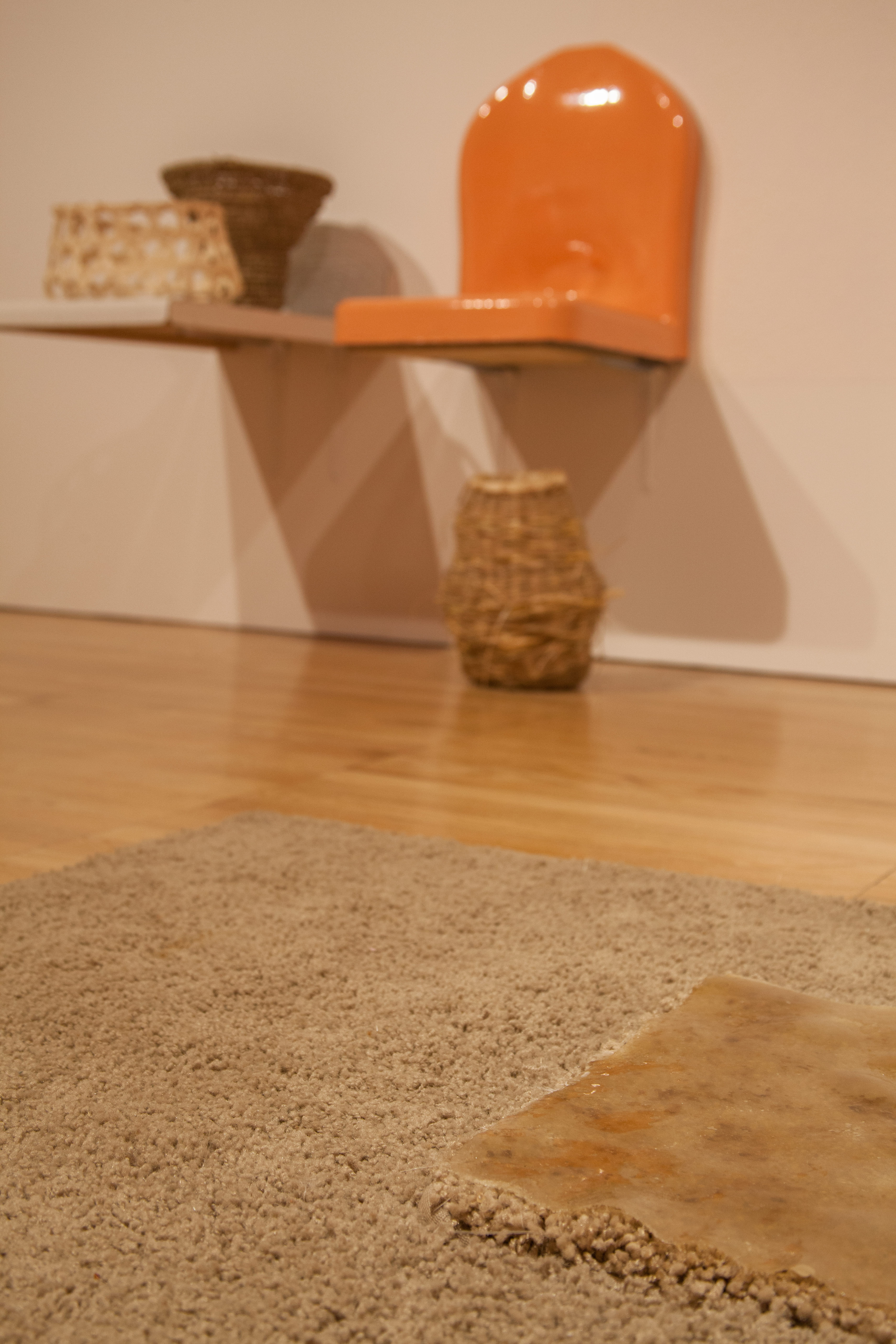 carpet, fiberglas, epoxy, foam, seagrass, wood, found shelf